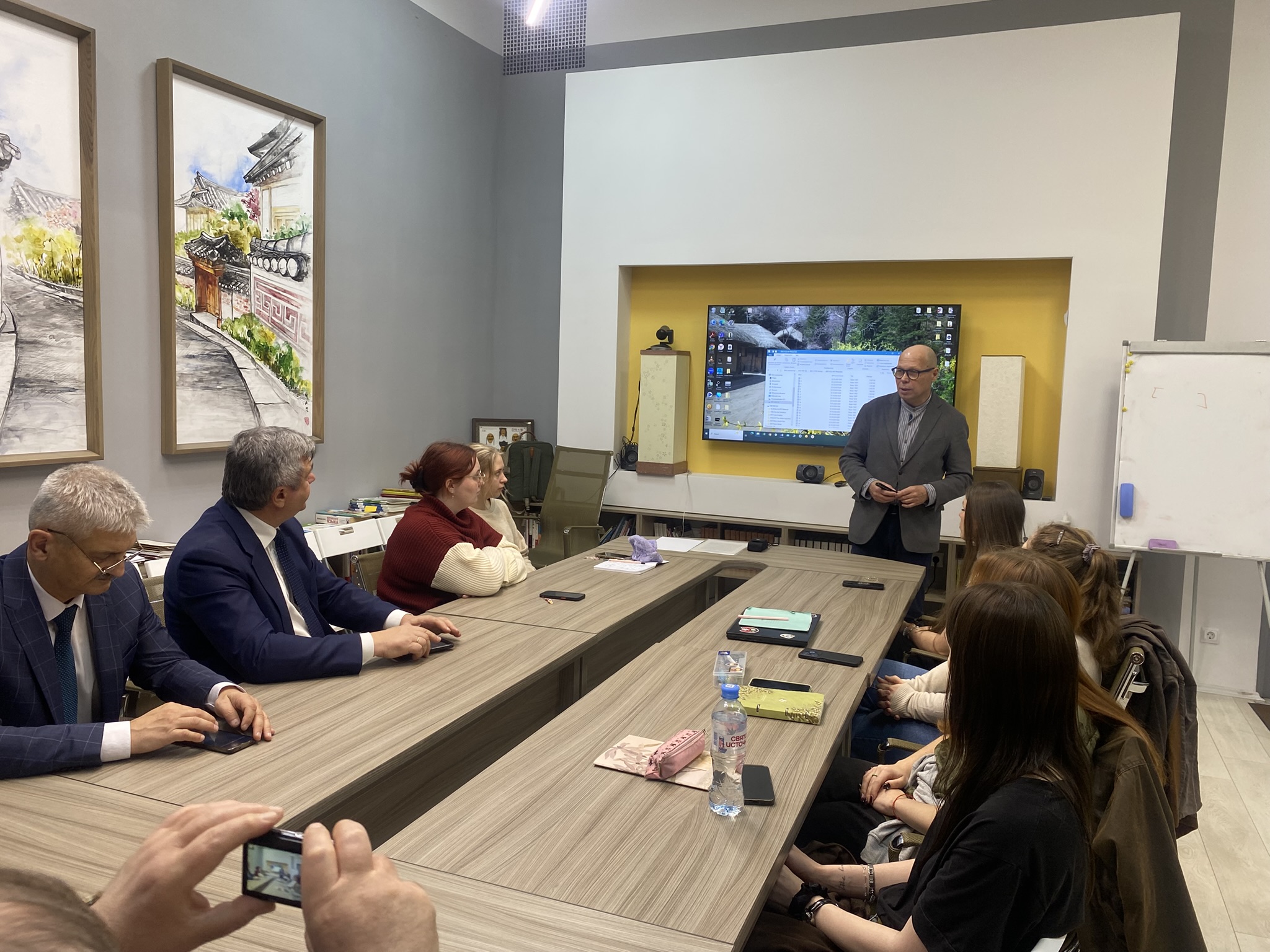 В завершении встречи заместитель председателя Комитета по внешним связям В.Г. Калганов и директор центра корееведения института востоковедения РГПУ им. А.И. Герцена С.О. Курбанов выразили мнение о том, что данная выставка заслуживает большего внимания, должна быть представлена в масштабе более крупного мероприятия и стать доступной широкой публике.
