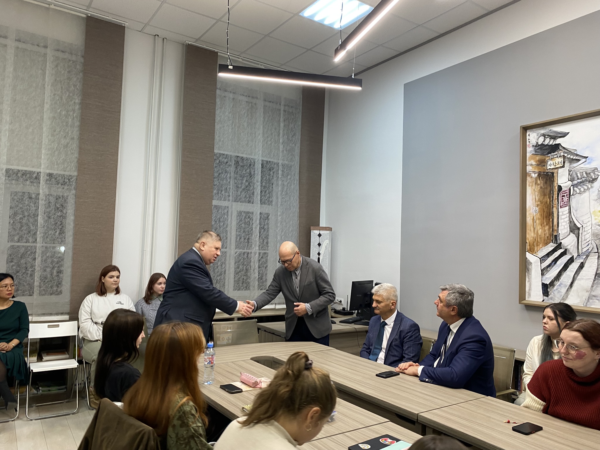 Затем к собравшимся обратился директор Института востоковедения РГПУ им. А.И. Герцена А.Л. Вассоевич, который также выразил благодарность В.Г. Калганову за усилия в распространении информации о Корейско-Демократической Республике среди студентов института востоковедения РГПУ им. А.И. Герцена и налаживании дружественных связей между нашими государствами.